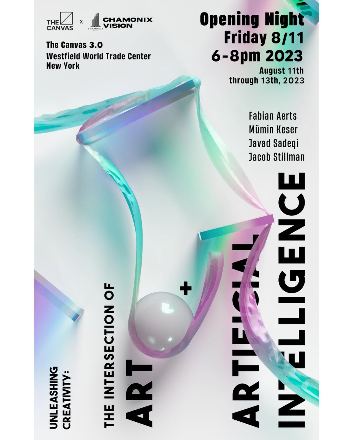 "The Intersection Between Art & Artificial Intelligence" was a digital art exhibition held by Chamonix Vision at The Canvas 3.0 inside One World Trade Center, New York City.