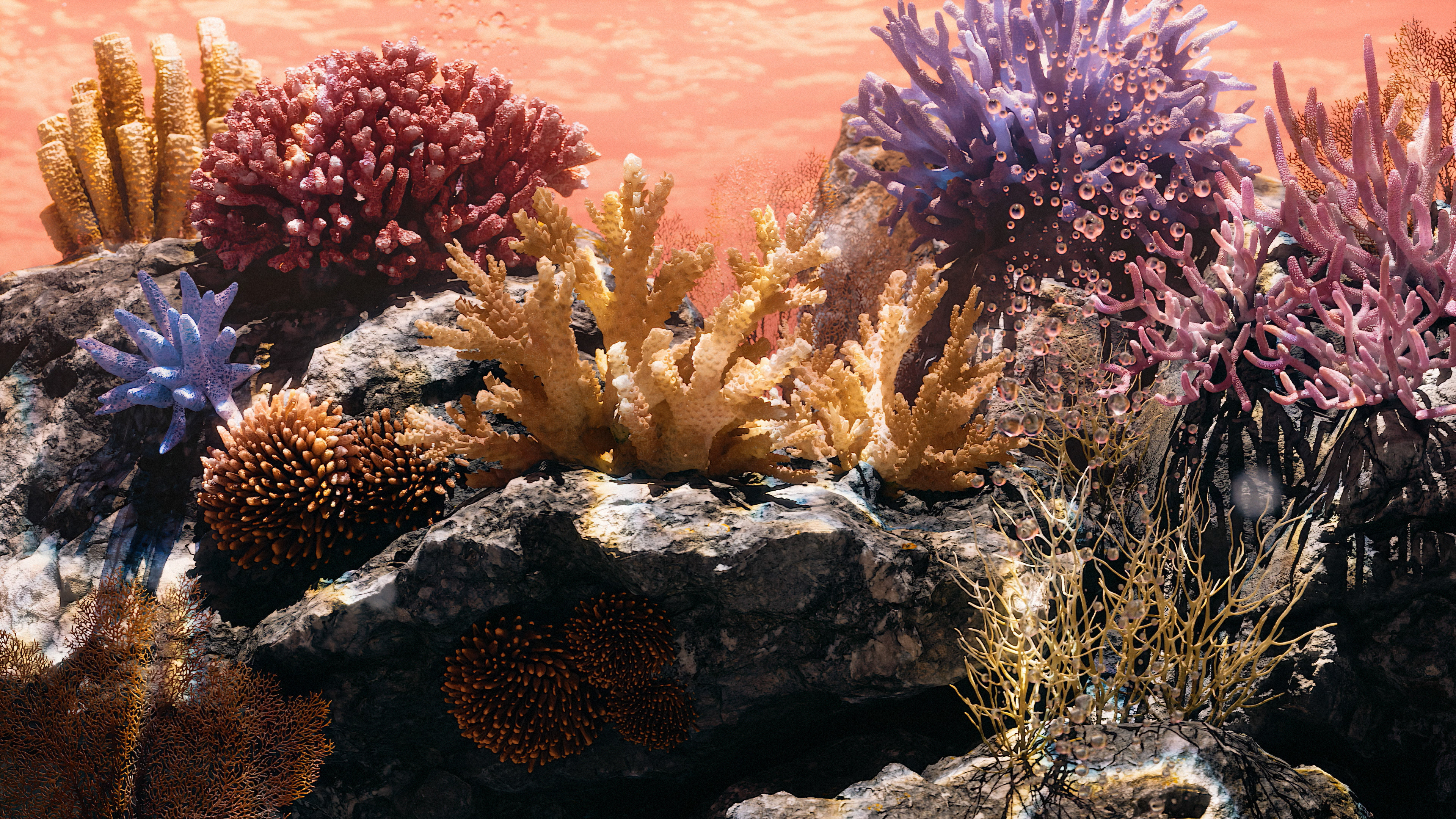 This project came with it's own unique hurdles by directing specific focus towards phytoplankton, oysters, kelp, and coral environments. Ocean acidification levels are seen through color palettes ranging from pristine blues to daunting magentas. The project was completed in a 1 month timeframe from ideation to final render.